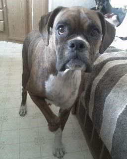 Brindle male moderately flashy, 1 year old, neutered, uncropped, 55 pounds, needs training, walks on leash but is a very active one year old. Has current shots...Contact Valjean 541.345.5059 or 541.484.0271