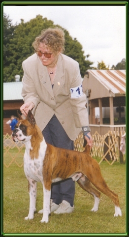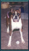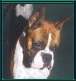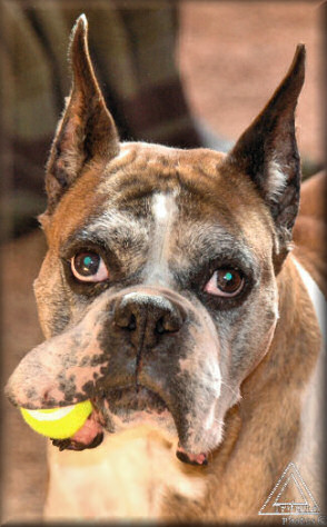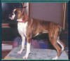 Cosmo is the subject of the overlay above. He and I spent six years going to shows trying to finish his championship. He gained most of his points in the first two years but the major win he needed to finish just kept alluding us. It wasn't his fault. As you can see above he is very correct, to the standard the way the American Boxer Club has written it. His inability to get the last win, to finish his championship,was more a product of timing, finances and geography. The link below goes to the story of his hijinx in the ring and some candid shots of Cos and I at his last show.