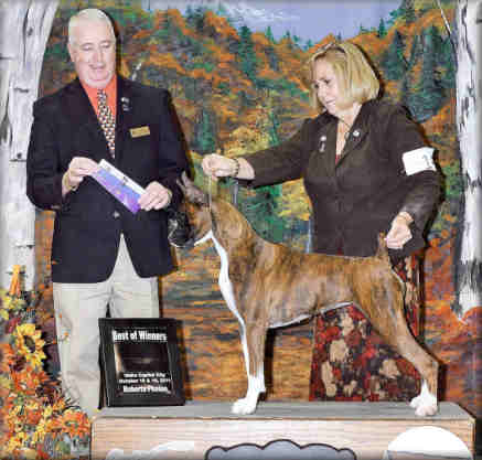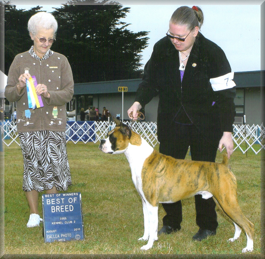 Gwena is bred by Alma Burk of O'Burks Boxers and is co-owned by myself and Jim and Priscilla Killman of Heart Acre Boxers.